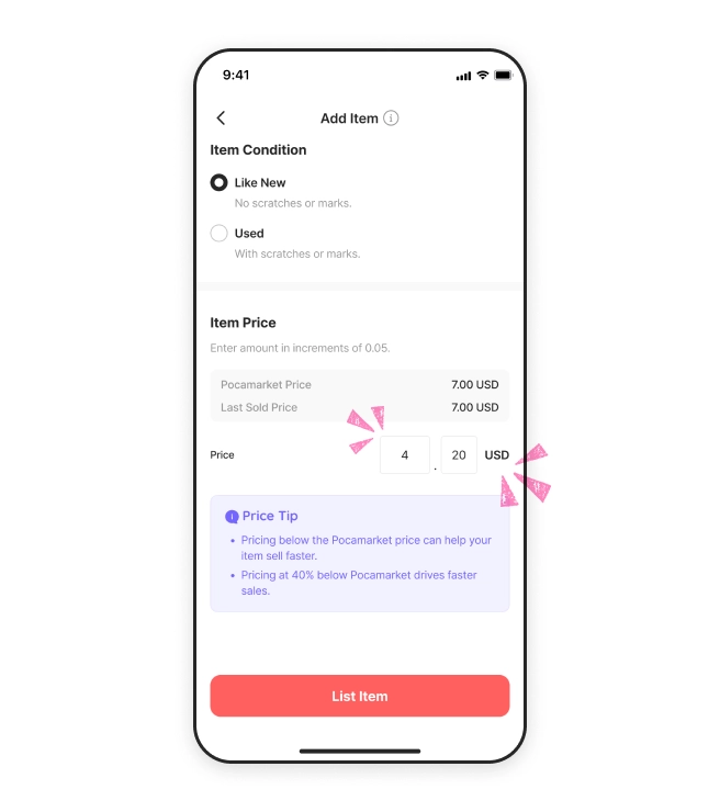 Select your item. We’ll show current and recent sale prices. Set your price based on this info!