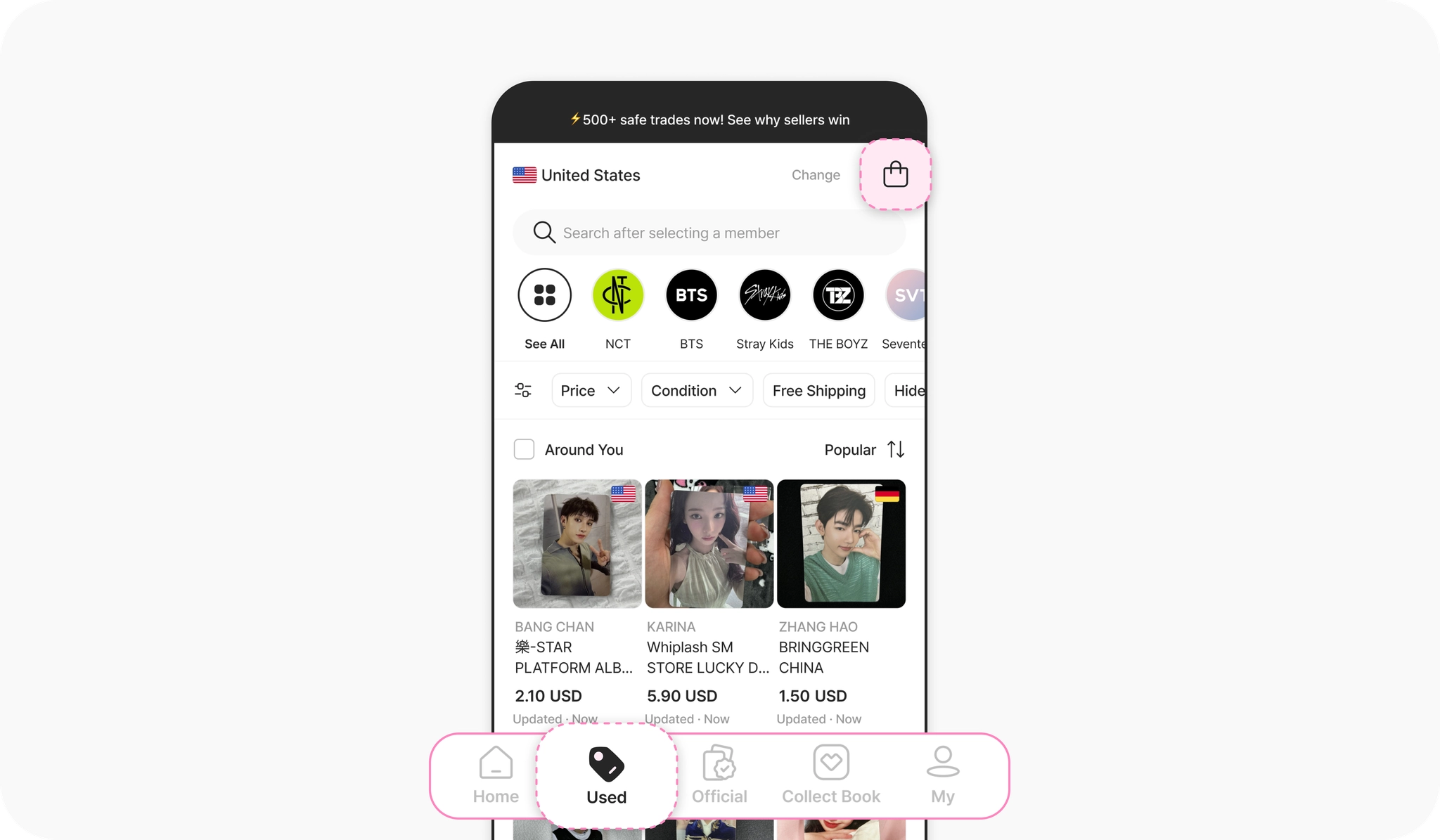 Each seller can set different shipping rates depending on the destination country (domestic or international). The more photocards you buy from a seller in your own country, the more cost-effective your shopping experience will be.